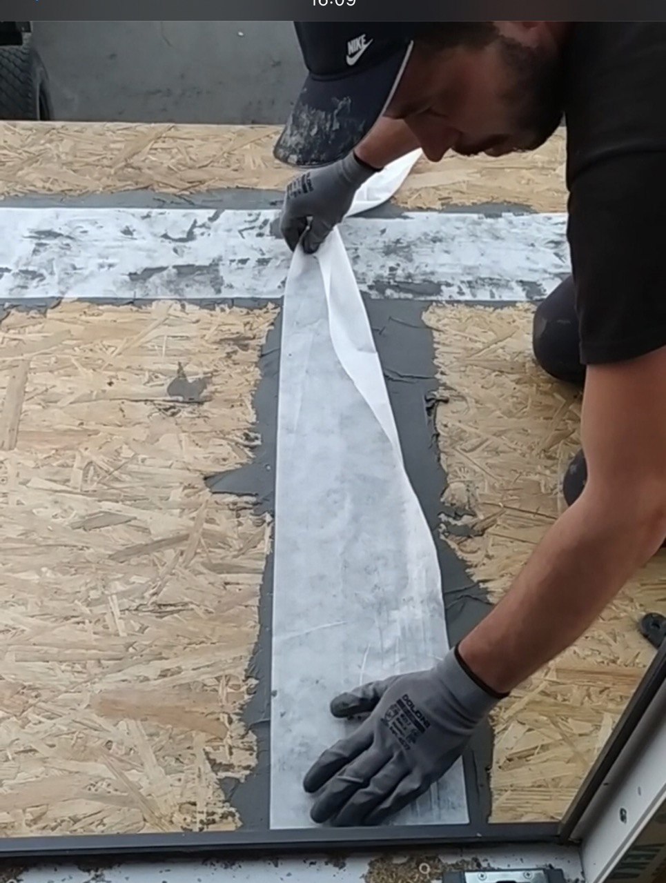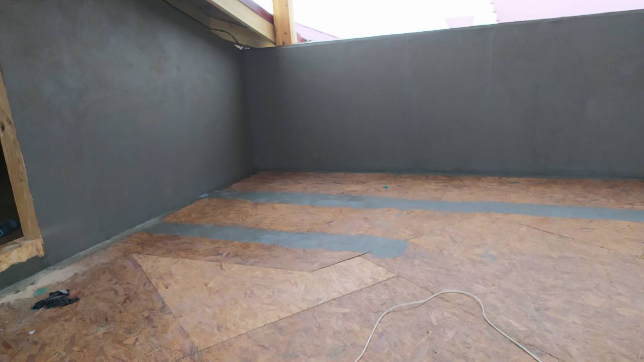 Після висихання грунту починаємо з герметизації стиків і примикань “підлога-стіна”, “стіна-стіна”, “підлога-підлога” з армуванням між шарами гідрорізоляції геотекстилем , щільністю близько 50гр/м2. Ширина стрічки повинна бути орієнтовно 200мм шириною.