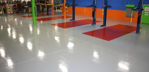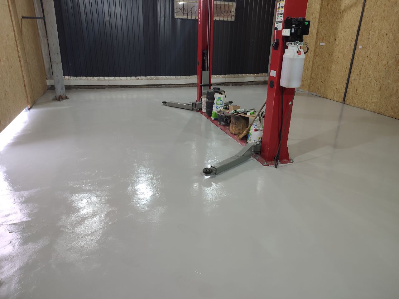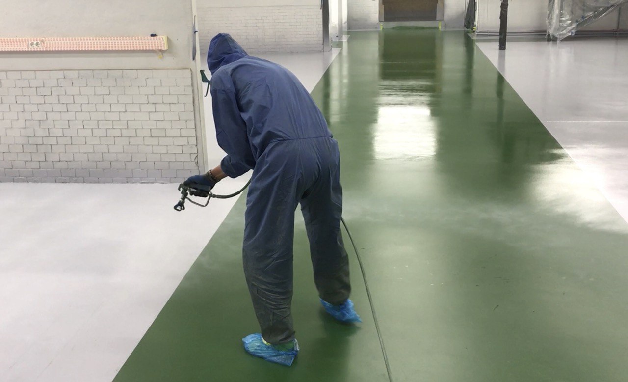 – одинарний чи подвійний прокрас бетонної підлоги. Це покриття вже дає можливість легкого прибирання та миття, запобігає появі пилу, дає стійкість до матеріалів походження нафто-газової промисловості та хімічних розчинів. Підлога має середню міцність та еластичність.